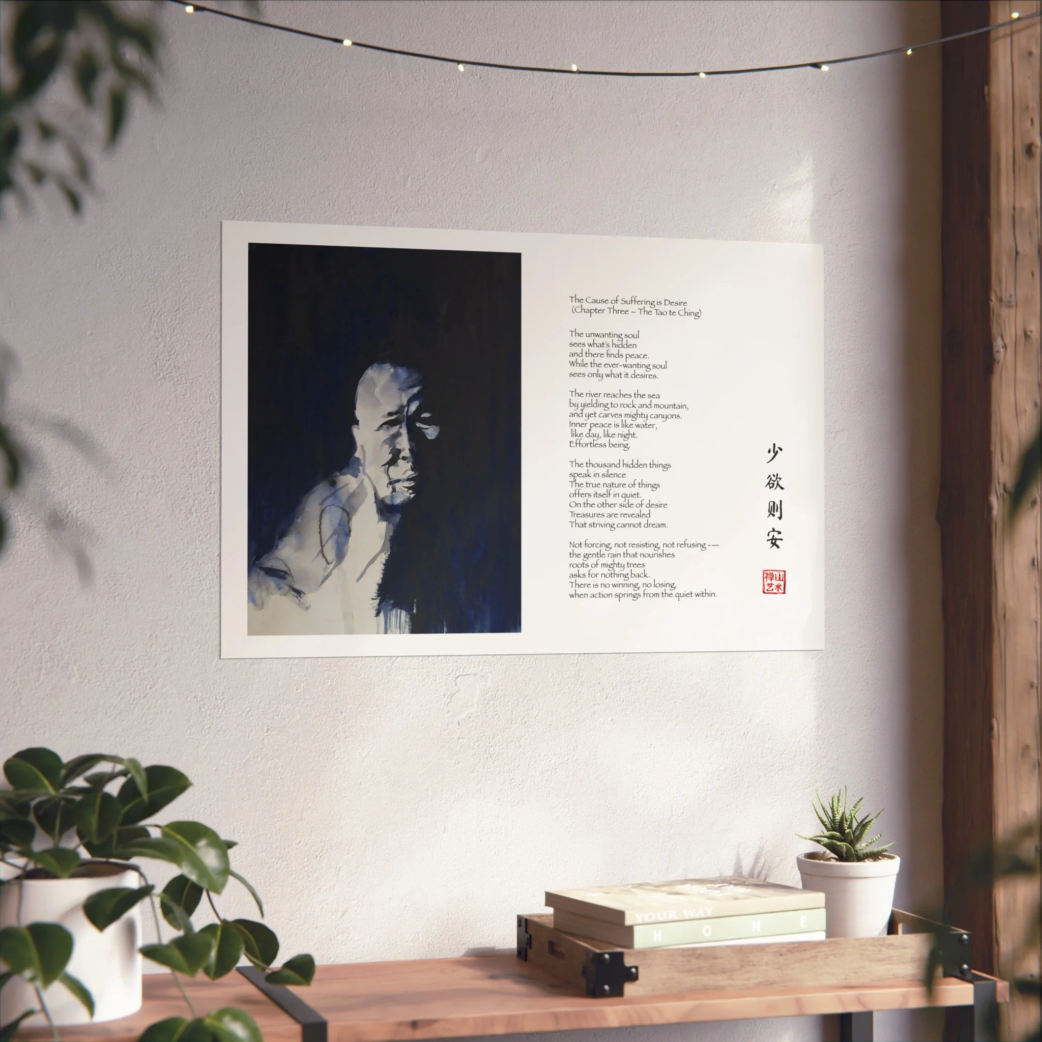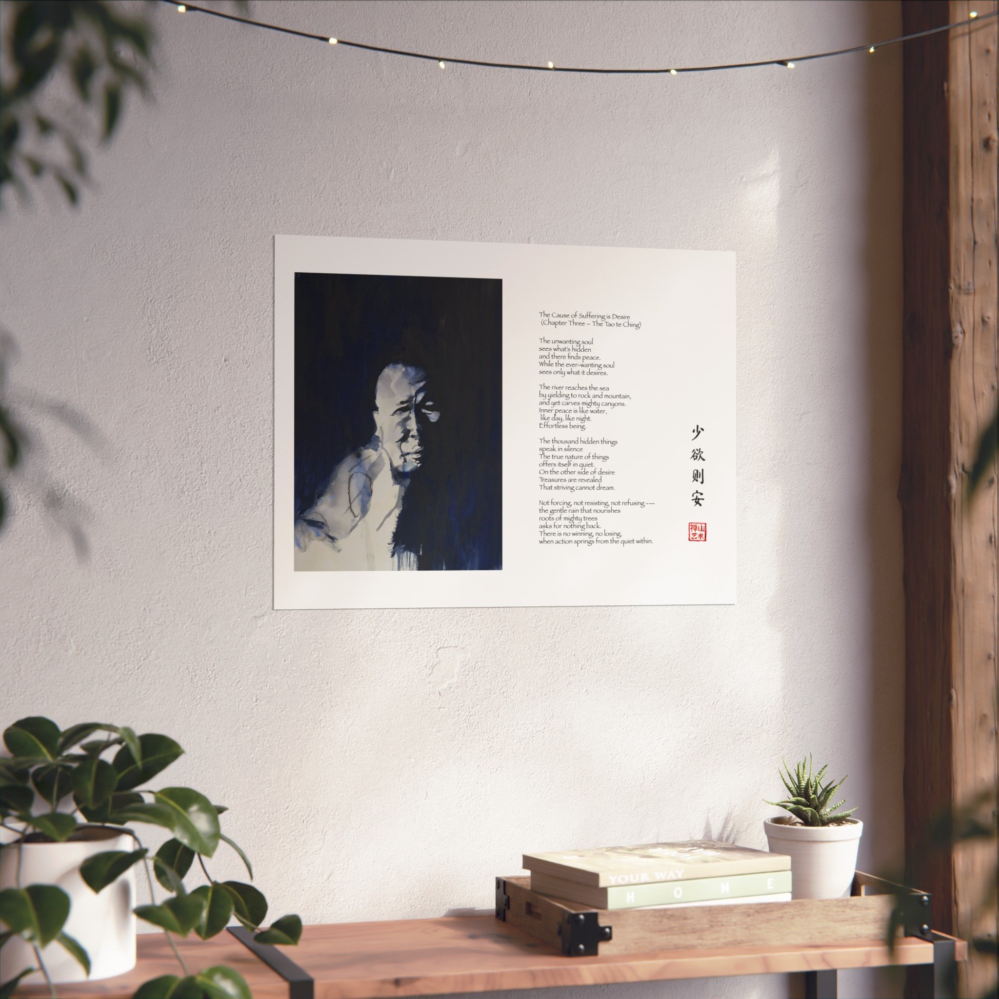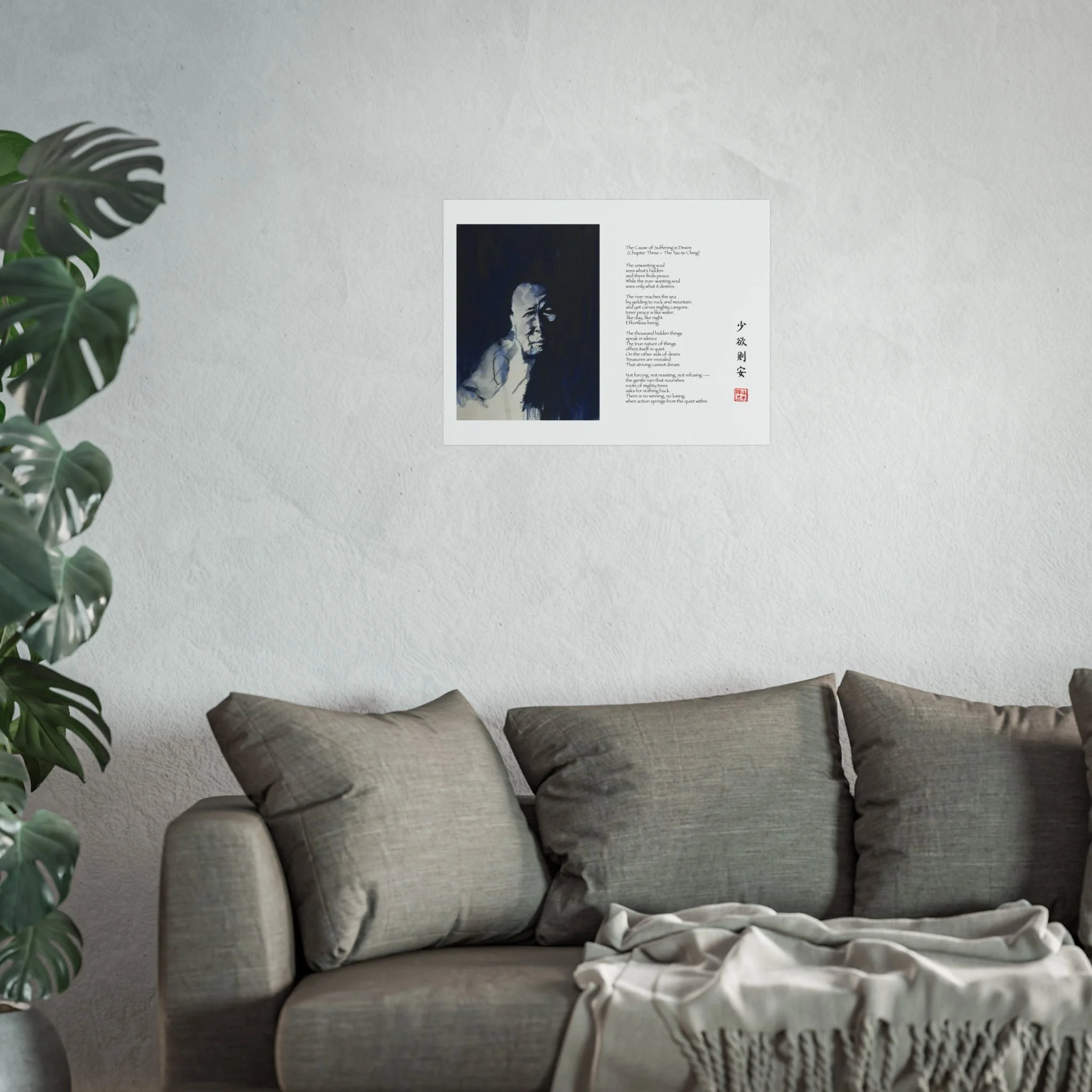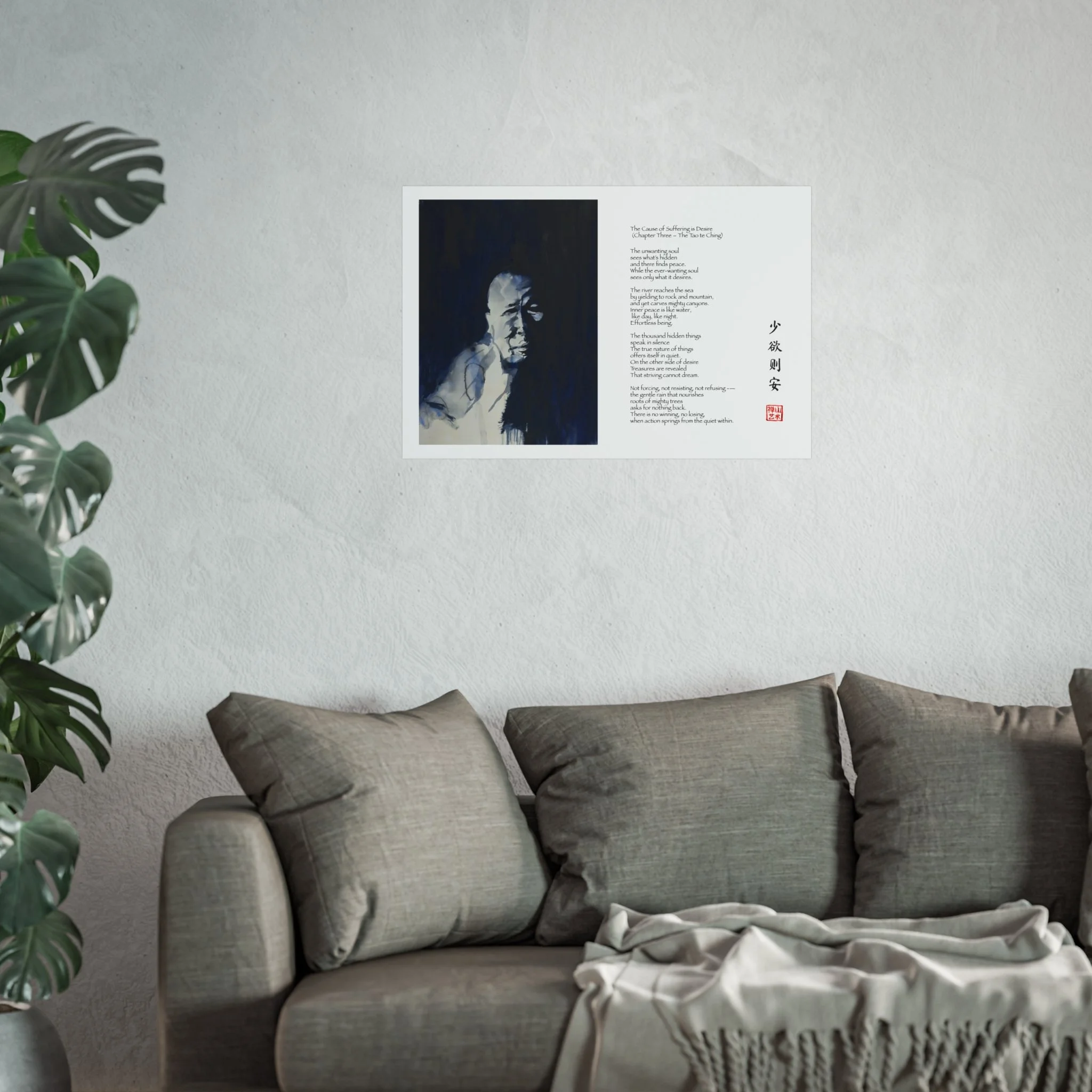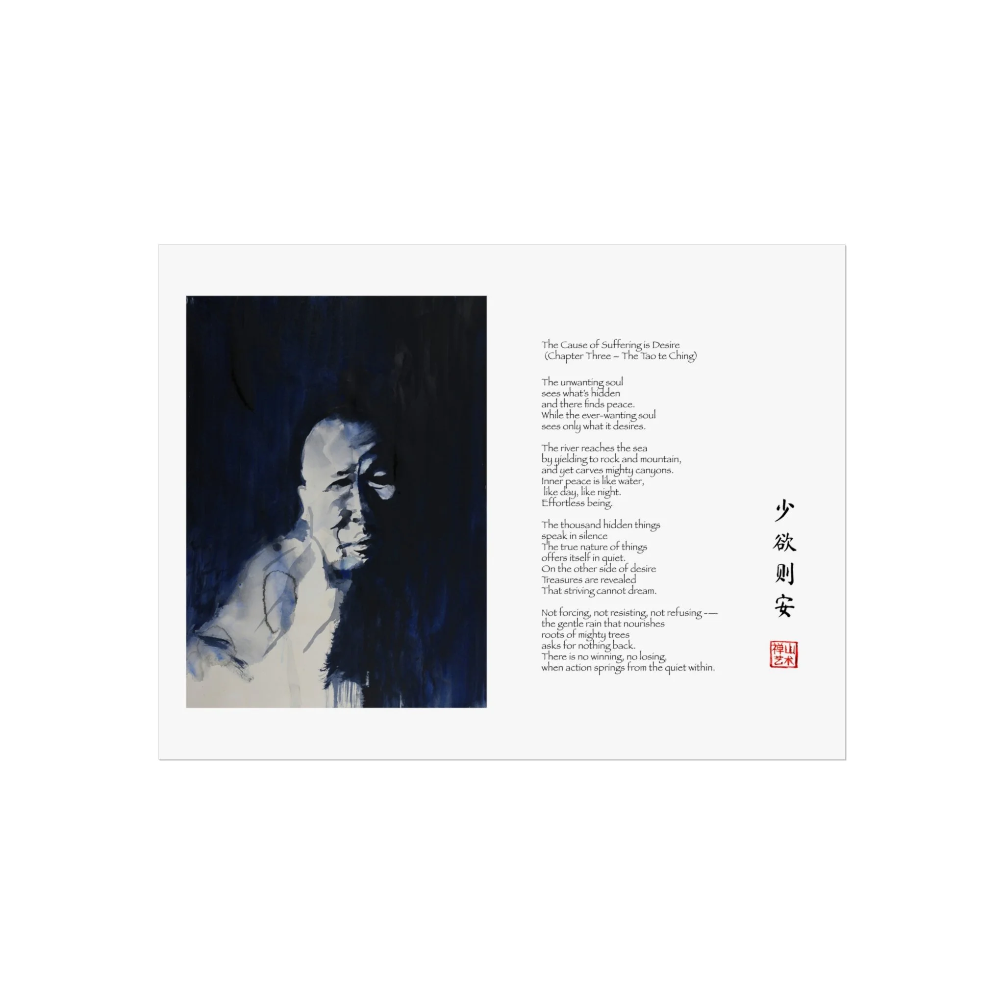 This painting, created with acrylic ink on canvas, is inspired by The Tao te Ching, Lao Tzu's epic poem about the gentle arts of a well-lived life. The painting is of a Taoist mountain hermit living in the Zhongnan mountains of northwestern China.